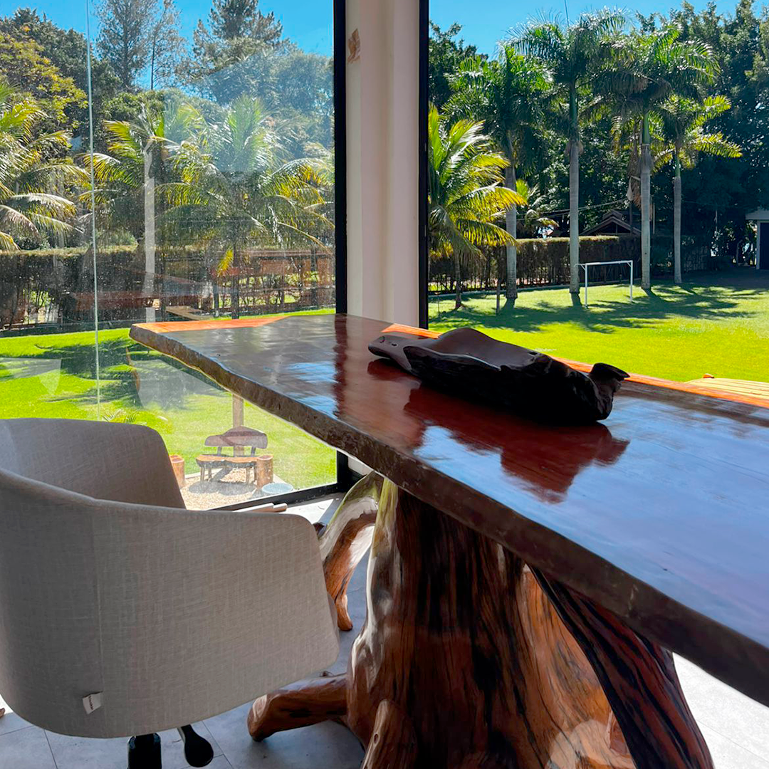 Trabalhamos com madeira desvitalizada — aquela que já viveu, que já foi raiz, tronco e abrigo. Damos uma nova chance a esse material, respeitando sua história e celebrando suas imperfeições.